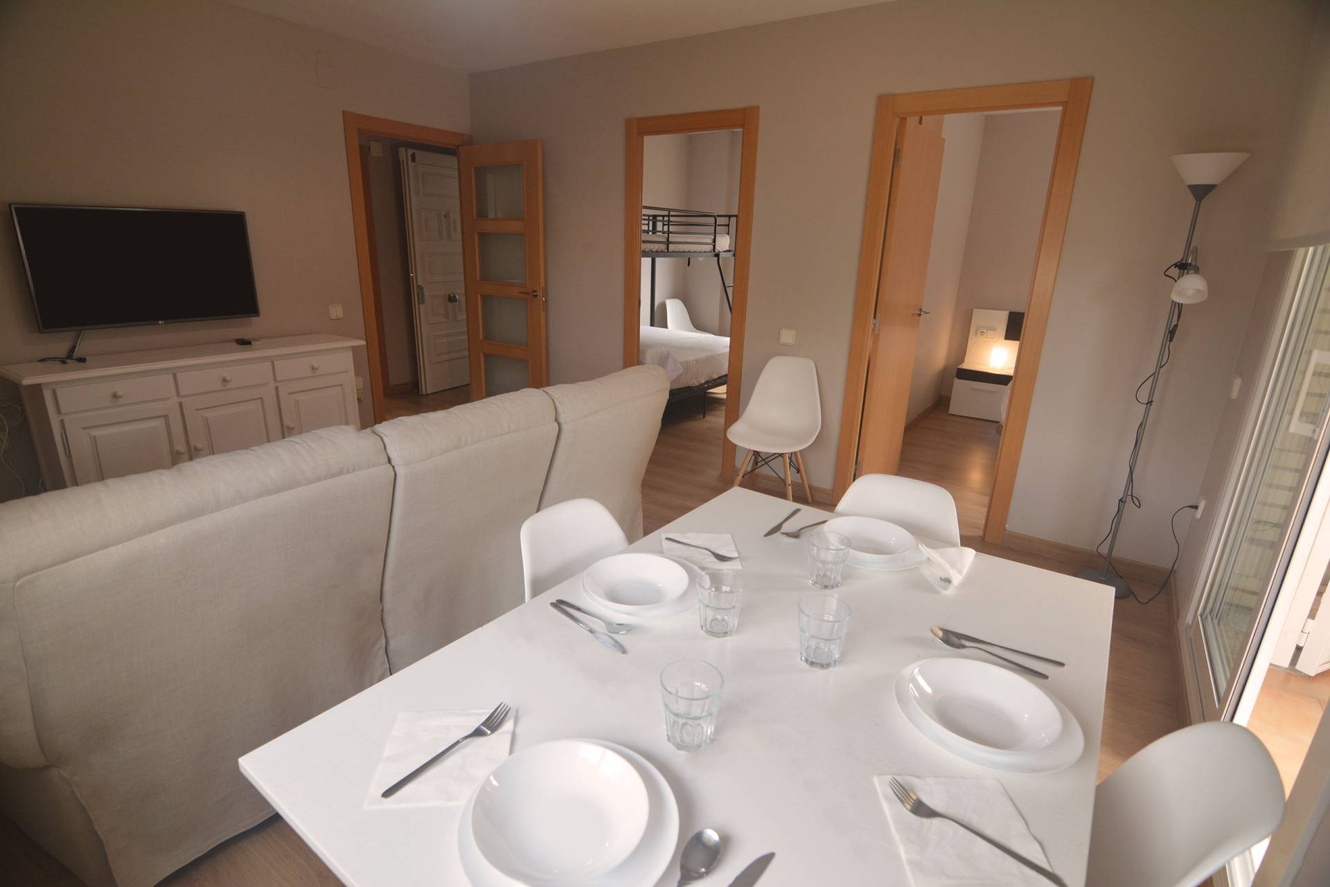 Todos los apartamentos son para una capacidad máxima de 6 personas, constan de 2 habitaciones dobles, comedor con sofá-cama, baño, cocina equipada con todo detalle y terraza. Todos disponen de aire acondicionado, conexión wifi independiente y Smart TV. Posibilidad de disponer de cuna y trona sin recargo. Las sabanas y toallas están incluidas.
